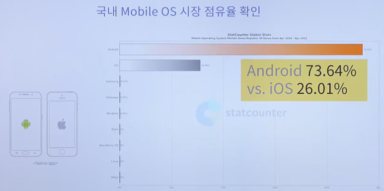 먼저 출시할 Platform을 정하는 기준 - 우리 나라에서 가장 많이 사용되고 있는 OS 시스템이 뭔지 확인한다.